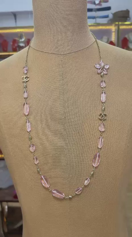 Chanel cruise 2025/26 Long Necklace. Metal, Resin&Glass, Gold&Pink