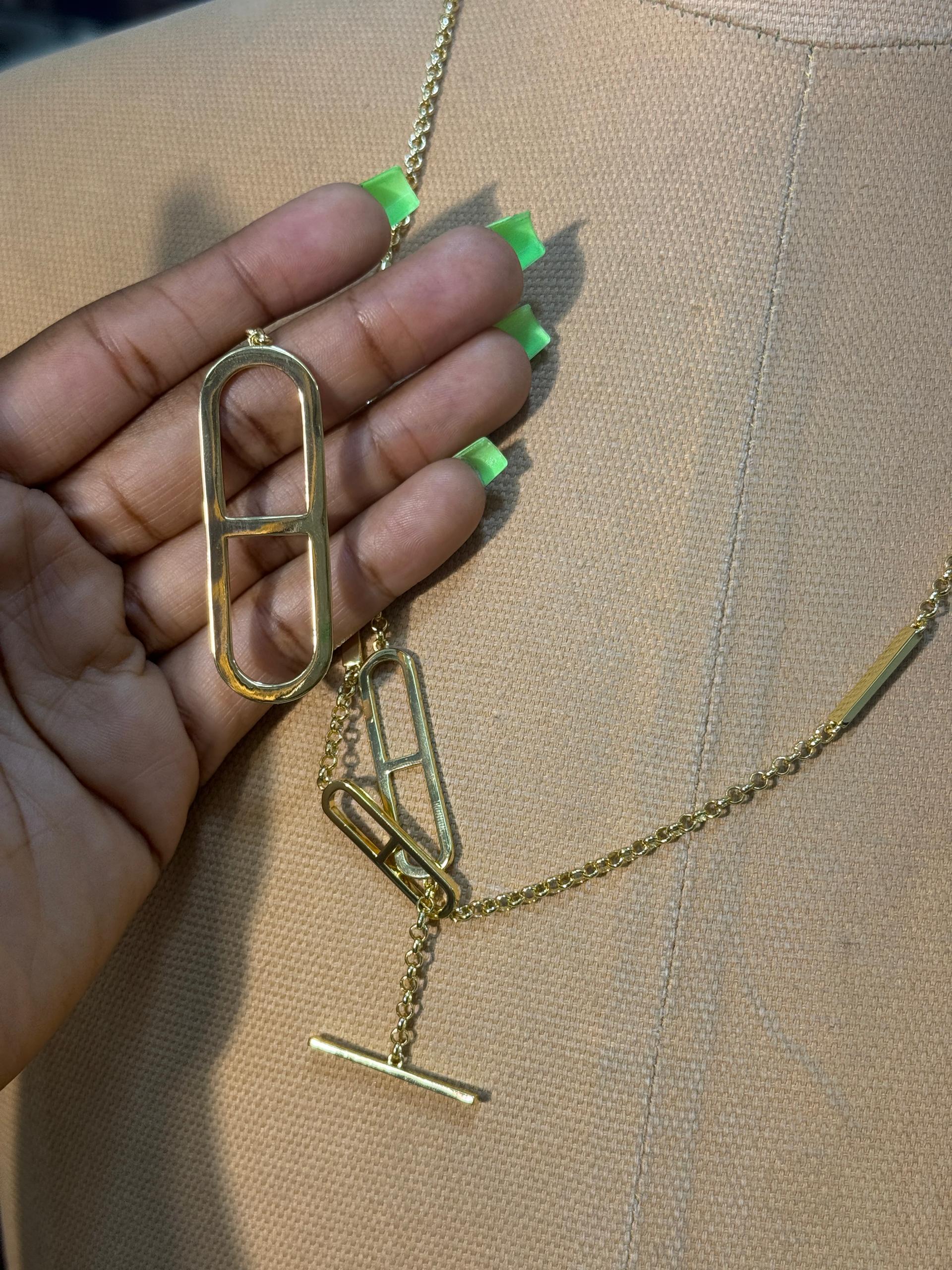 Discover the exquisite beauty of this Hermes-inspired sterling silver Ever Chaine D'Ancre Long Necklace. Crafted with meticulous attention to detail, this stunning piece captures the iconic design of the legendary Chaine D'Ancre collection, featuring the signature anchor chain link pattern that has become synonymous with luxury and sophistication.